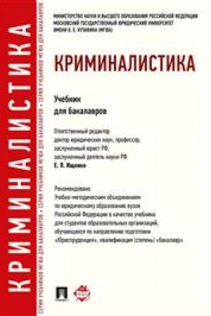 V učebnike izlagaetsja polnyj kurs kriminalistiki s učetom položenij dejstvujučšego zakonodatel′stva (v pervuju očered′ ugolovno-processual′nogo): raskryty občšeteoretičeskie položenija nauki, opisany dostiženija kriminalističeskoj techniki i taktiki, dany osnovy metodiki rassledovanija naibolee rasprostranennych vidov prestuplenij. Normativnye akty ispol′zujutsja po sostojaniju na 1 marta 2014 g. Učebnik podgotovlen s učetom dejstvujučšich v Rossii standartov v oblasti obrazovanija i neposredstvenno adresovan studentam-bakalavram, osvaivajučšim azy jurisprudencii, no takže možet byt′ polezen aspirantam, prepodavateljam vuzov, sotrudnikam pravoochranitel′nych organov — vsem, kto interesuetsja problemami protivodejstvija prestupnosti. GRIF: Dopučšen Učebno-metodičeskim ob′′edineniem po juridičeskomu obrazovaniju vuzov Rossijskoj Federacii v kačestve učebnika dlja studentov vysšich učebnych zavedenij, obučajučšichsja po special′nosti i napravleniju podgotovki JUrisprudencija.
