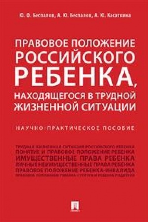 V dannom naučno-praktičeskom posobii predstavleno pravovoe položenie rebenka-siroty; rebenka, ostavšegosja bez popečenija roditelej i drugich blizkich rodstvennikov; rebenka-invalida; rebenka-supruga; rebenka-roditelja (materi, otca). Rabota javljaetsja putevoditelem po zakonodatel′stvu RF o pravach rossijskogo rebenka, nachodjačšegosja v trudnoj žiznennoj situacii, i sudebnoj praktike po sporam, svjazannym s začšitoj prav takich detej. Avtory privodjat sistemu mer dlja ustranenija vyjavlennych problem. Zakonodatel′stvo privedeno po sostojaniju na fevral′ 2018 g. Rabota rassčitana ne tol′ko na specialistov v sfere prav rebenka v RF, no i na širokij krug čitatelej.